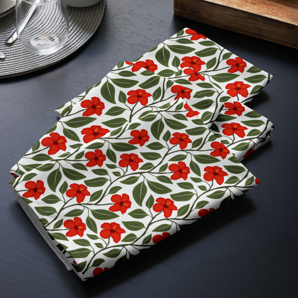 Bring a burst of vibrant energy to your creations with this red tropical floral seamless pattern. Featuring bold red flowers and lush green leaves on a clean white background, this design is perfect for fabric printing, digital backgrounds, packaging, and more.